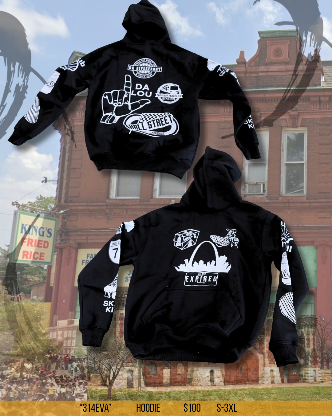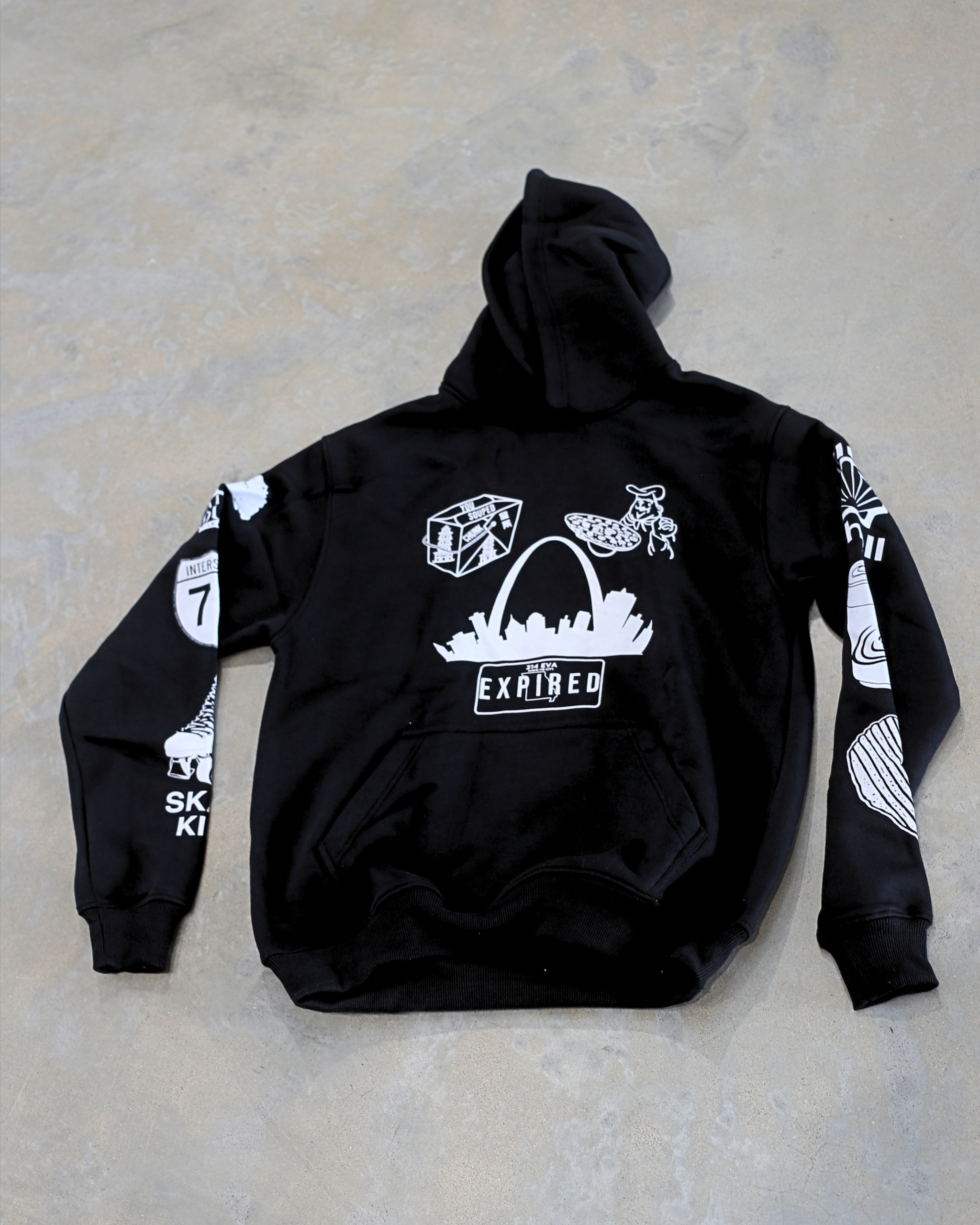 Heavyweight red hoodie featuring bold St. Louis inspired graphics in a clean, high-contrast print.